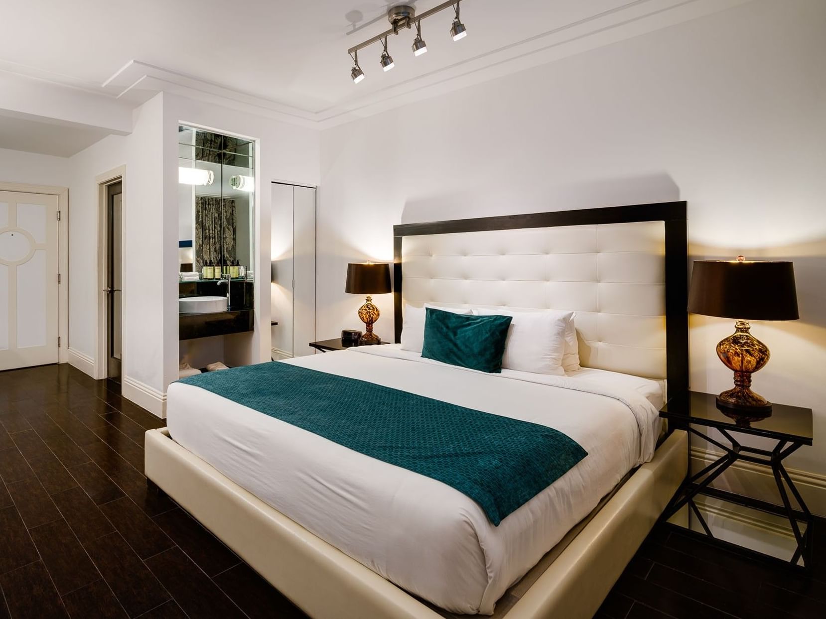 An ideal blend of luxury and style. This room offers a plush king-size bed and an inviting sitting area with a cozy leather love-seat, perfect for unwinding after a day of work or exploration.