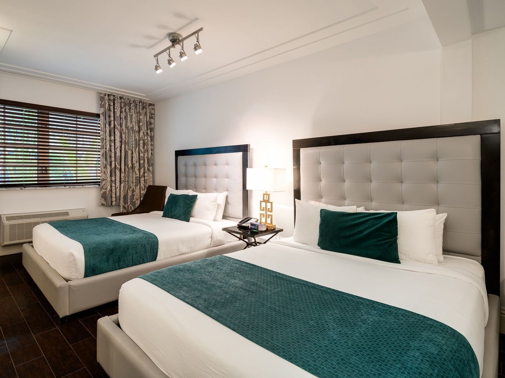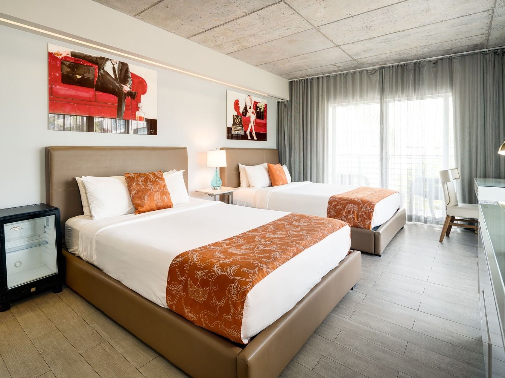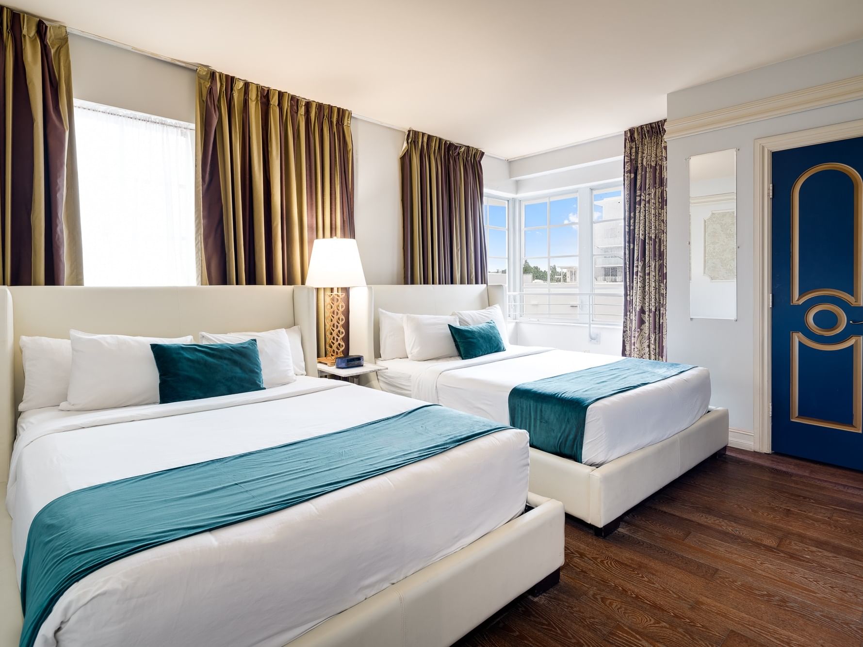 Experience the vibrant energy of Miami Beach from your private furnished balcony. This stylish room features two queen-size beds.